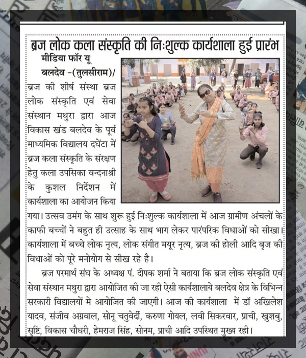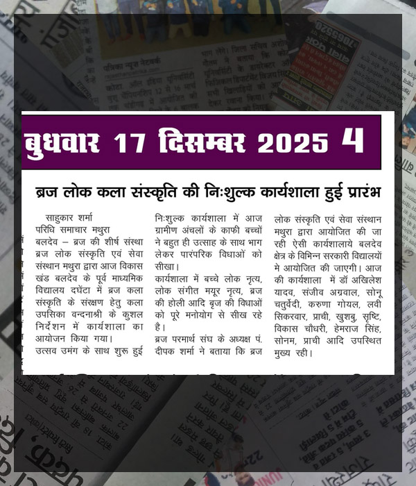 “Braj Lok Sanskriti Evam Seva Sansthan” is always striving to maintain the originality and beauty of Indian art and culture. Our endeavor is to maintain the purity of our culture.